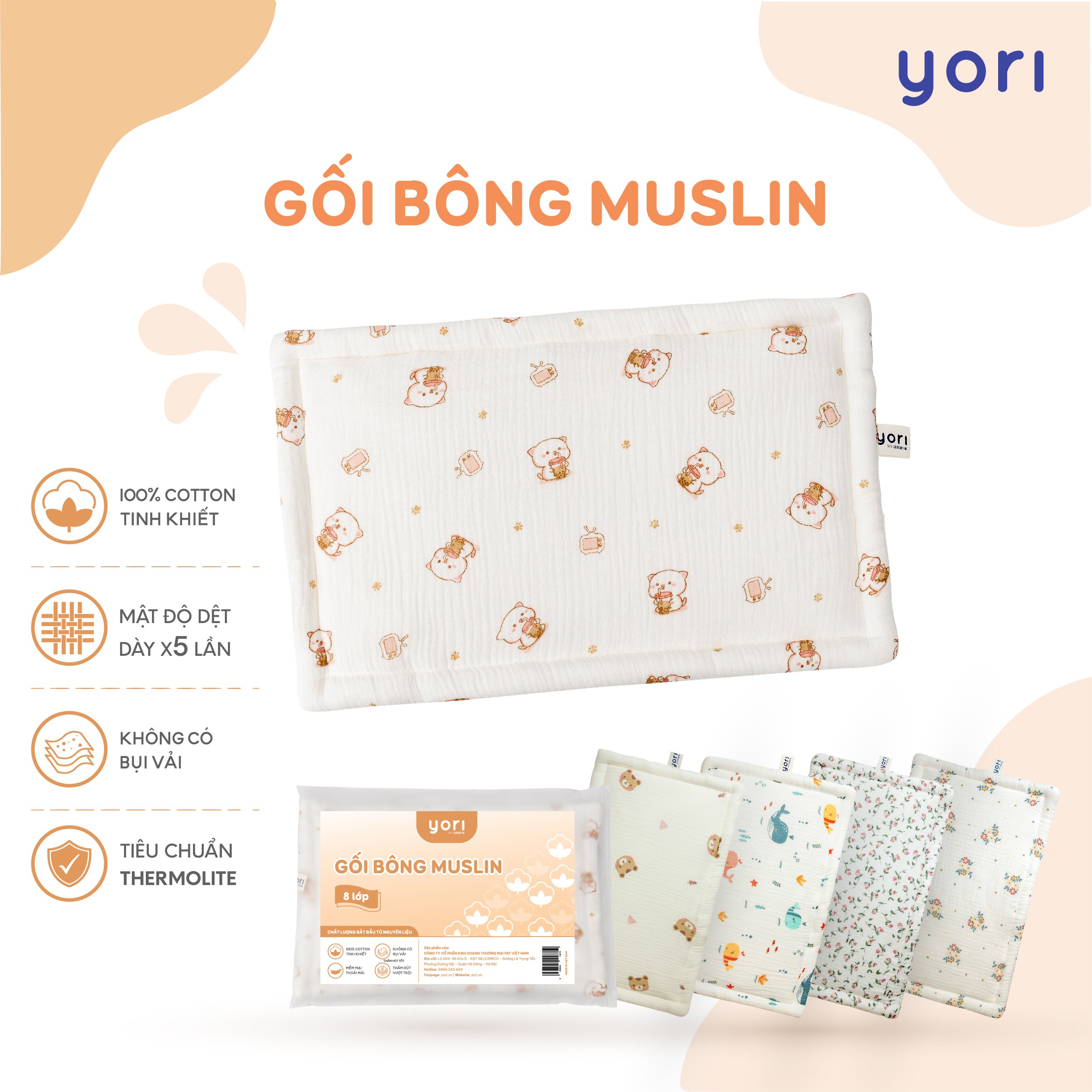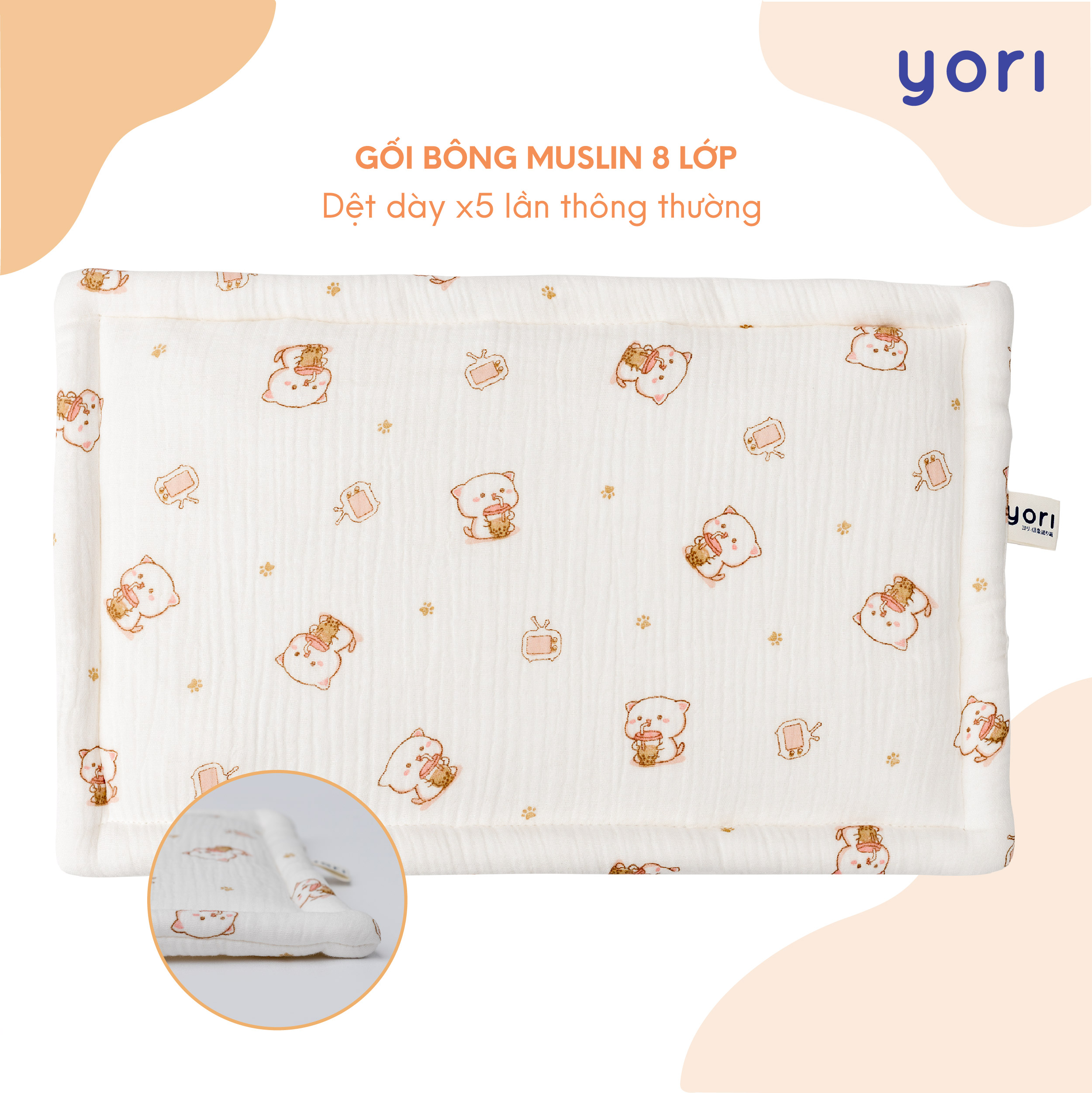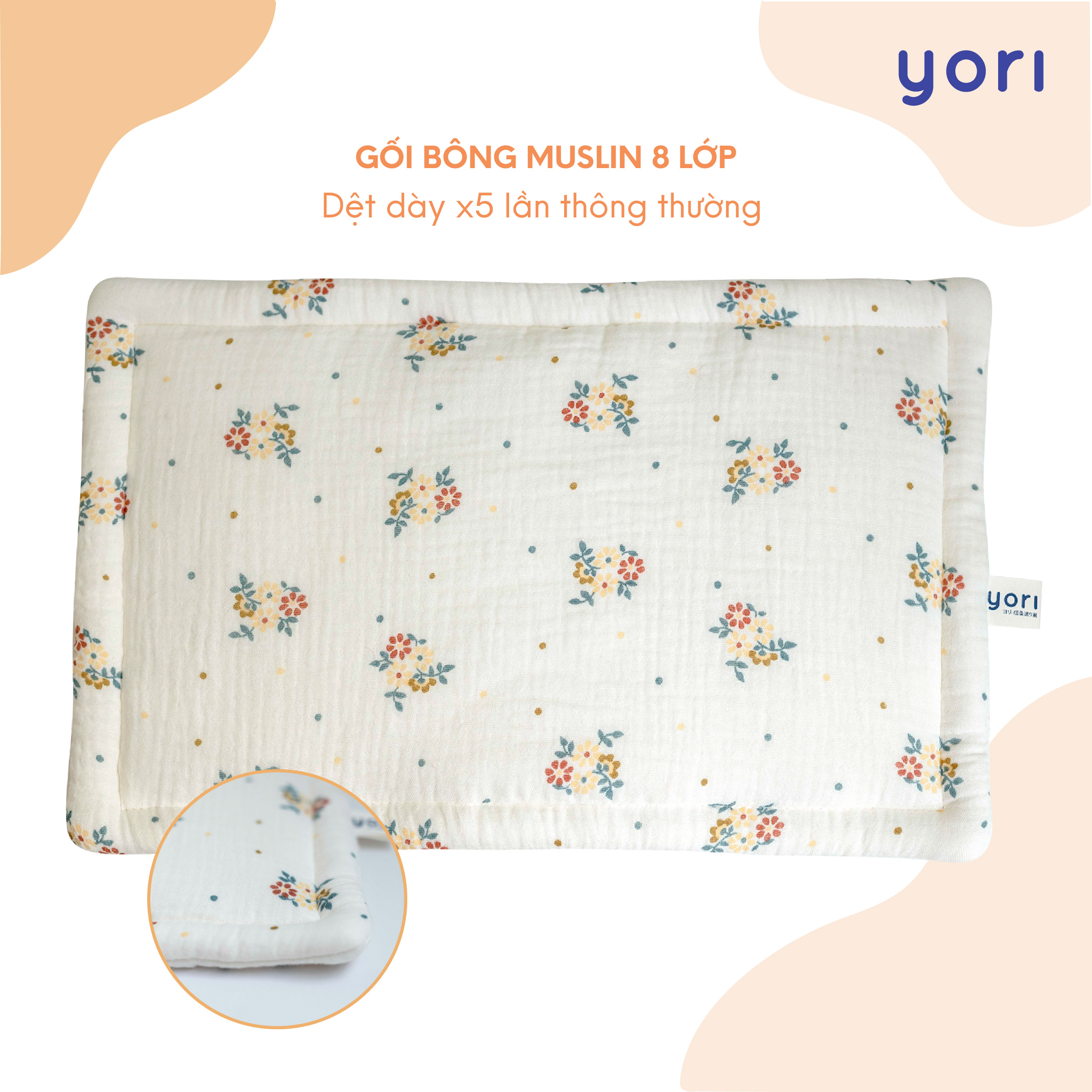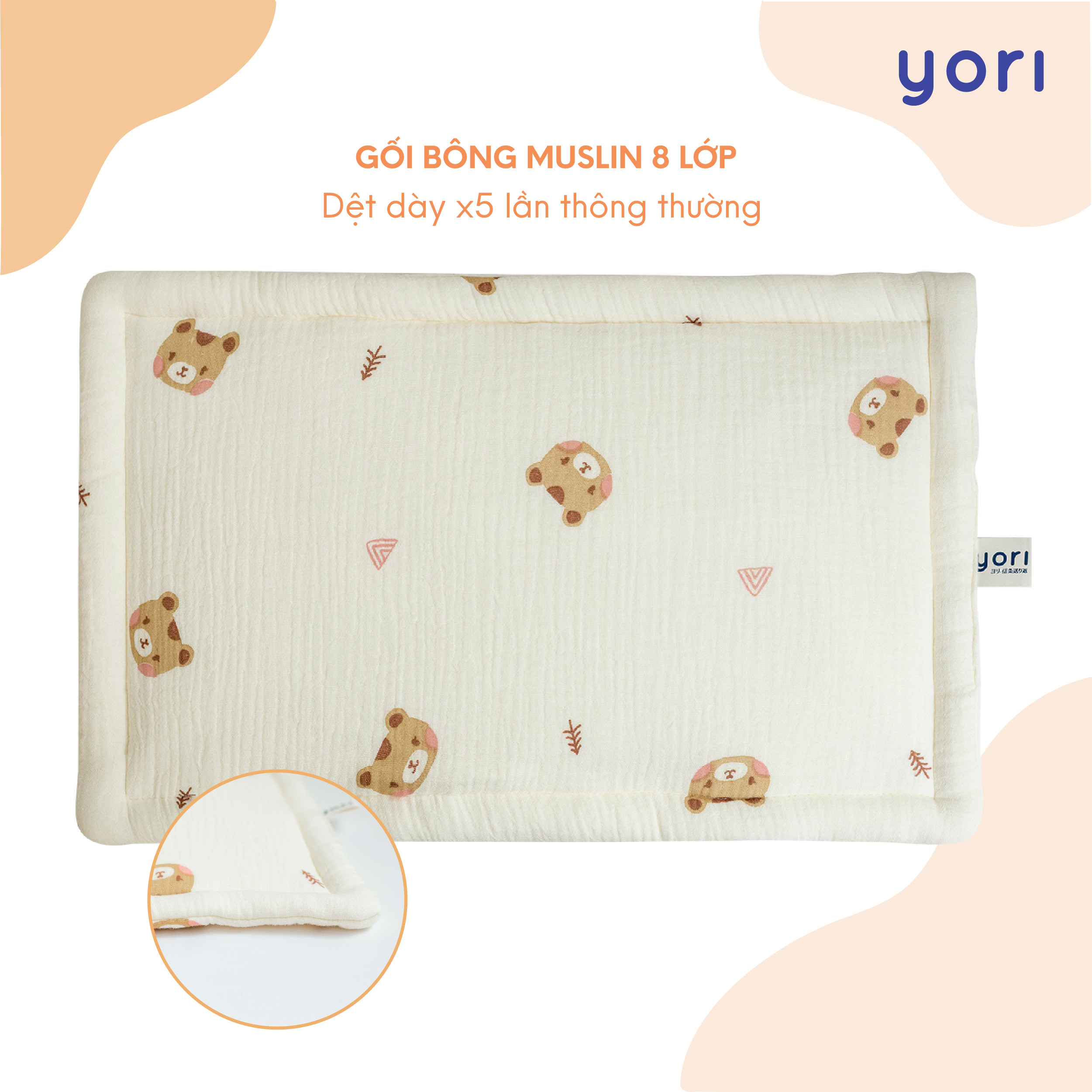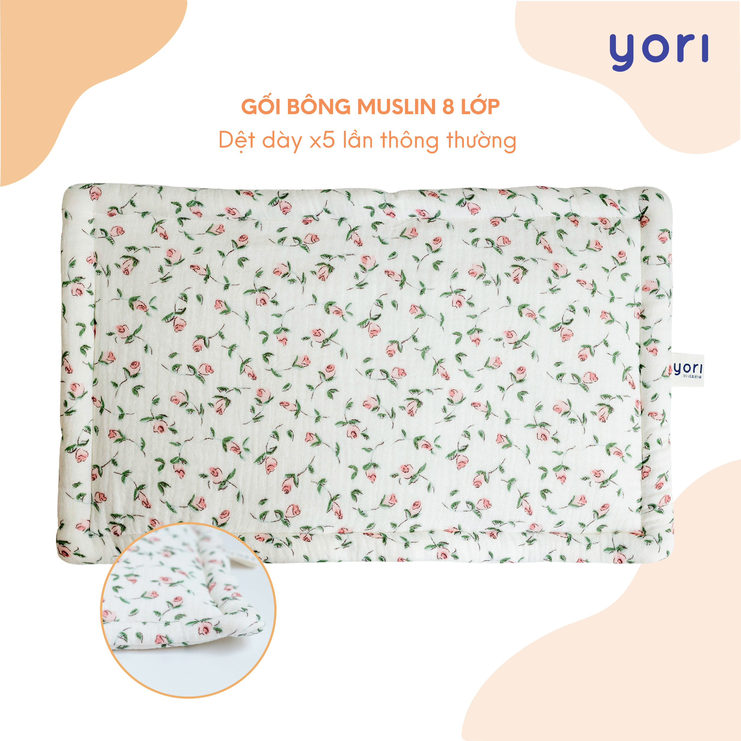 Gối bông Muslin YORI mang đến sự mềm mại, an toàn và phong cách cho bé, là món quà yêu thương, đem lại giấc ngủ ngon và sự phát triển khỏe mạnh cho bé mỗi ngày.